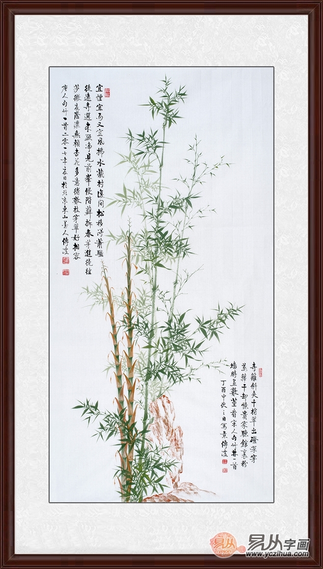 竹,姿态高雅,有着君子之称,其一节一节的外形,也象征着事业节节高升,如日中天,李传波老师的绿竹画最大的亮点在于空白处配上诗句,这让整幅作品看上去更显高雅且韵味十足。李传波是启功亲传大弟子,其书法和竹子画作品不管是在收藏领域或是拍卖市场都非常受欢迎,所以,为商务送礼选李传波老师的竹子画,足以可见你的用心良苦。