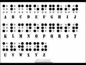 盲文以“方”为单位,每个方有6个点,通过这些点的排列组合,可以表达不同的意思。一般需要两个“方”才能表达一个汉字的音节。