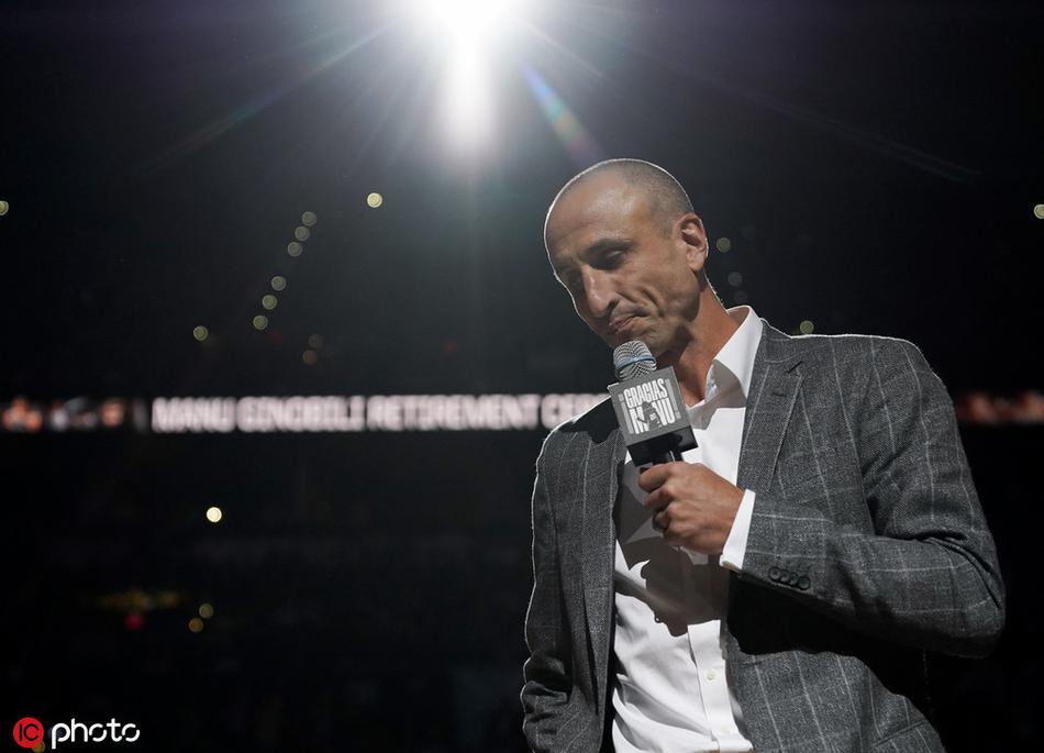 这些泪水,送给马努·吉诺比利。29日,他的20号球衣高高悬挂在马刺队球馆上空,永远伴随圣安东尼奥。