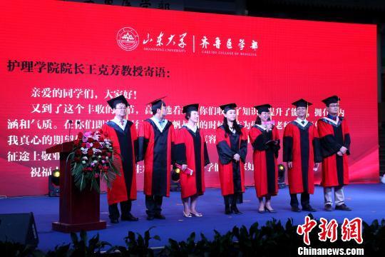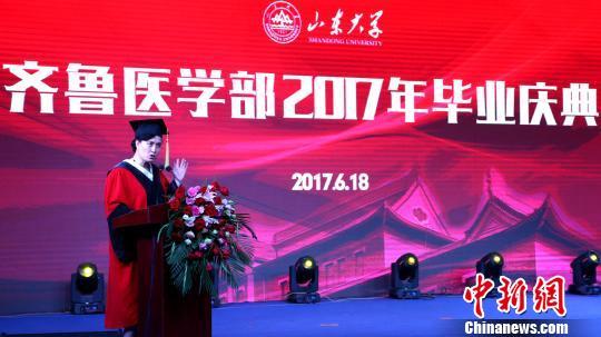 山东大学副校长、齐鲁医学部部长陈子江在毕业庆典上说,医学没有捷径,外面的世界瞬息万变,嘱咐学生自觉学习、主动学习、终生学习,当一名合格的健康卫士。 梁犇 摄