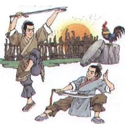 一天半夜,祖逖被远处传来的鸡叫声惊醒,便把刘琨踢醒,说:“你听到鸡叫声了吗?”刘琨侧耳细听了一会,说:“是啊,是鸡在啼叫。不过,半夜的鸡叫声是恶声啊!”祖逖一边起身,一边反对说:“这不是恶声,而是催促我们快起床锻炼的叫声。”刘琨闻言,跟着穿衣起床。两人来到院子里,拔出剑来对舞,直到曙光初露。后来,二人皆成为国家的栋梁之才。